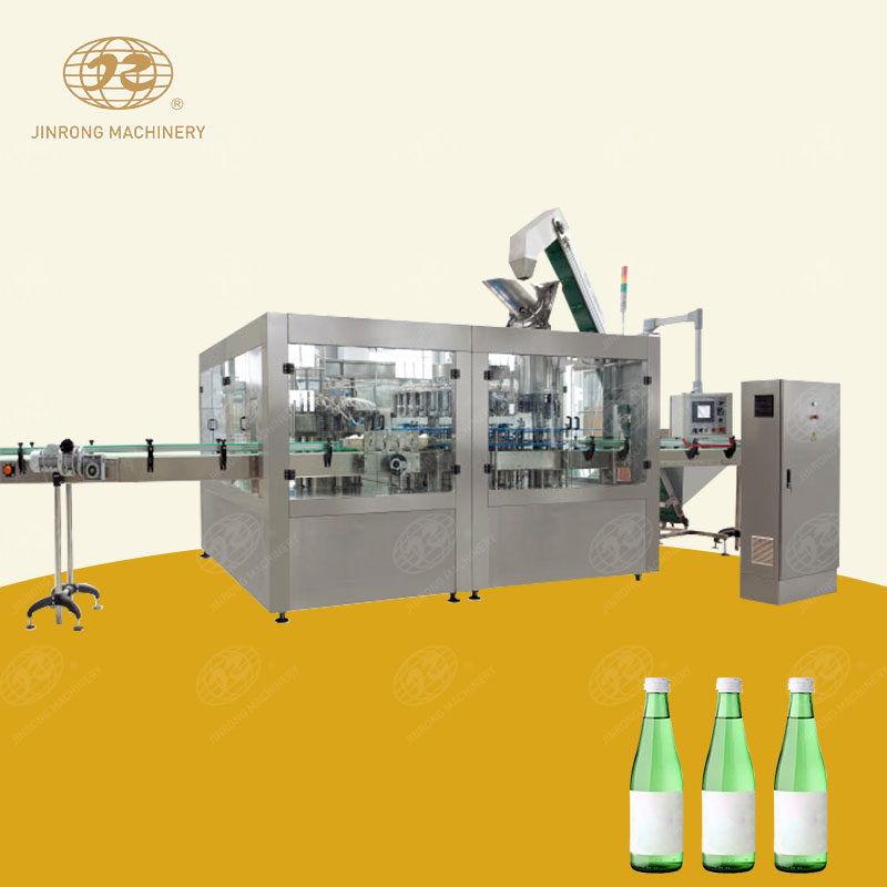 玻璃瓶果汁灌裝機(jī)主要用于玻璃瓶果汁飲料的生產(chǎn),成套玻璃瓶果汁生產(chǎn)線適合芒果汁、藍(lán)莓汁、桑葚汁、菠蘿汁、檸檬汁、柚子汁等。在玻璃瓶灌裝一體機(jī)上實(shí)現(xiàn)沖洗,灌裝,三旋蓋和四旋蓋等封口的功能。玻璃瓶果汁灌裝機(jī)械具有結(jié)構(gòu)緊湊、占地面積小、設(shè)計(jì)科學(xué)合理、造型美觀、操作維修方便,自動(dòng)化程度高等特點(diǎn),適合中小型果汁廠。玻璃瓶果汁灌裝機(jī)采用卡瓶頸懸掛工態(tài)設(shè)計(jì),且采用灌裝閥升降,采用人機(jī)界面觸摸屏控制、PLC電腦控制、變頻器控制等技術(shù)。